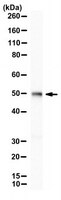 ~50 kDa observed; 47.23 kDa calculated. Uncharacterized bands may be observed in some lysate(s).
