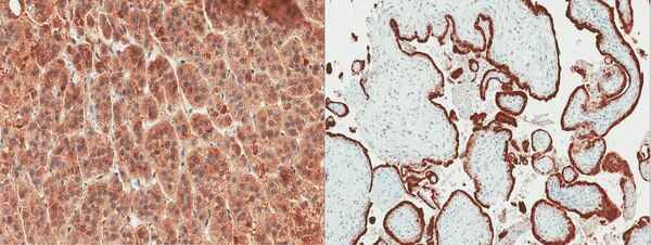 Evaluated by Immunohistochemistry (Paraffin) in human placenta tissue sections.