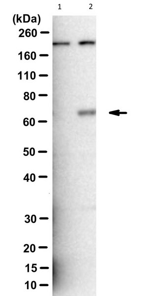 ~65 kDa observed; 64.41 kDa calculated. Uncharacterized bands may be observed in some lysate(s).