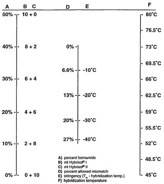 See the "Hybrisol® Nomograph for Dextran Sulfate" link located under the "Protocols" tab at catalog number S4031 product specific page on www.chemicon.com for determining the proper concentration of dextran sulfate needed for various hybridization condition guidelines.