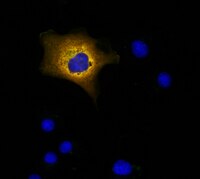 Application NotesImmunocytochemistry Analysis: 5 µg/mL from a representative lot detected EGFP-tagged mouse BRAP in transfected COS-7 cells (Courtesy of Yuanyi Feng, Ph.D., Northwestern University, USA).