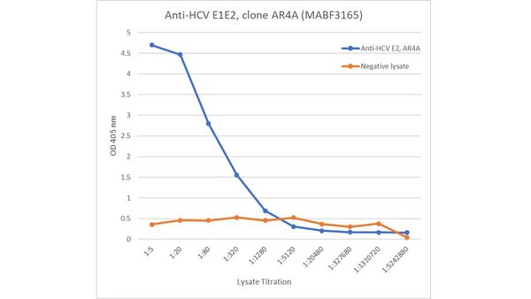 Anti-HCV E1E2, clone AR4A, Cat. No. MABF3165, is a human recombinant monoclonal antibody that detects envelope protein E1E2 in Hepatitis C virus and is tested for use in ELISA, Immunoprecipitation, and Neutralizing activity.