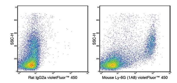 | Application | Anti-Ly-6G (mouse), violetFluor™ 450, clone 1A8 Antibody is an antibody against Ly-6G for use in Flow Cytometry. |