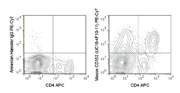 This armenian hamster monoclonal Anti-CD152 (CTLA-4) Antibody (mouse), PE-Cy7, clone UC10-4F10-11, Cat. No. MABF1585 is validated for use in Flow Cytometry, for the detection of CD152 (CTLA-4).
