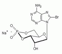 Adenosine 3ʹ,5ʹ-cyclic Monophosphate, 8-Bromo-, Sodium Salt, CAS 76939-46-3, is a cell-permeable cAMP analog with greater resistance to phosphodiesterases. Preferentially activates protein kinase A.