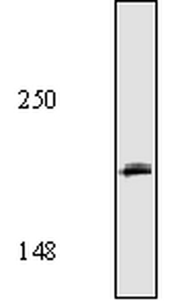 | Application Data | ![]() Detection of mouse AnkyrinG by immunoblotting. Sample: Whole tissue extract from mouse brain. Primary antibody: Anti-AnkyrinG Mouse mAb (463) (Cat. No. NB20) (2 µg/ml) Detection: chemiluminescence. |