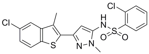 | Synonyms | N-(1-(3-(5-Chloro-3-methylbenzo[b]thiophen-2-yl-1-methyl-1H-pyrazol-5-yl))-2-chlorobenzenesulfonamide, 2-Chloro-N-(3-(5-chloro-3-methylbenzo[b]thiophen-2-yl)-1-methyl-1H-pyrazol-5-yl)benzenesulfonamide |