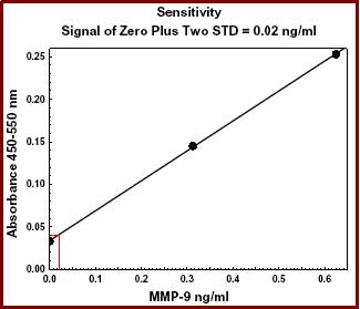 Sensitivity NotesThe assay can easily distinguish 0.1 ng/ml of MMP-9 from zero.