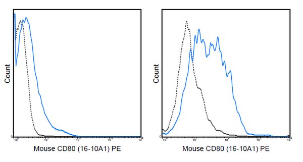 This armenian hamster monoclonal antibody Anti-CD80 (B7-1) (mouse), PE, clone 16-10A1 validated for use in IP, IHC, Immunofluorescence & Flow Cytometry for the detection of CD80 (B7-1).