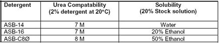 | Application Data | ![]() ![]() Urea and solvent compatabilty of the zwittergents (Chevallet, M., et al. 1998. Electrophoresis 19, 1901.) |