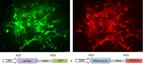 | Application | Clonal FAD RenCell® VM human neural progenitor cell line that expresses APPSL-GFP and PSEN1-mCherry. |
