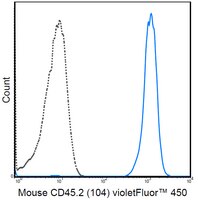 This mouse monoclonal antibody Anti-CD45.2 (mouse), violetFluor 450, clone 104 validated for use in IP, Flow Cytometry & ICC for the detection of CD45.2.