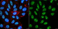 Immunocytochemistry Analysis: A 1:500 dilution from a representative lot detected monomethyl Histone H2B (Pro1) in HeLa, A431, HUVEC, and NIH3T3 cell lines.