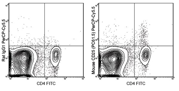 This rat monoclonal antibody Anti-CD25 (mouse), PerCP-Cy5.5, clone PC61.5 validated for use in IP, IHC & Flow Cytometry for the detection of CD25.