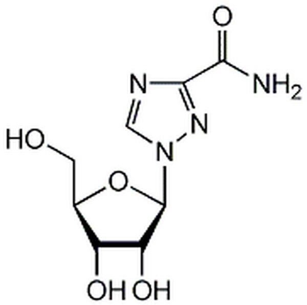 More>> A non-interferon-inducing, broad spectrum antiviral nucleoside. Reported to be active against RSV, HIV, HCV, and other infectious agents. Its metabolite, ribavirin-5'-phosphate, inhibits inosine monophosphate (IMP) dehydrogenase. Less<<Sinónimos: 1-β-D-Ribofuranosyl-1,2,4-triazole-3-carboxamide, Virazole