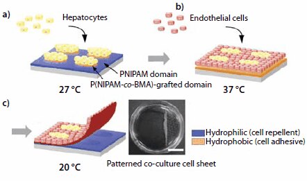 異種細胞の共培養に用いられるパターニングされた温度応答性表面