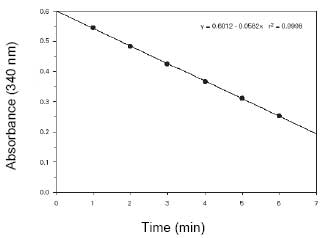 6. Read the absorbance once every minute at 340 nm using a plate reader to obtain at least 5 time points.