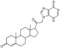 More>> The JAK3 Inhibitor VIII, NSC114792 controls the biological activity of JAK3. This small molecule/inhibitor is primarily used for Phosphorylation & Dephosphorylation applications. Less<<Synonyms: 10,13-Dimethyl-17-(2-(6-sulfanylidene-3H-purin-9-yl)acetyl)-1,2,6,7,8,9,11,12,14,15,16,17-dodecahydrocyclopenta[a]phenanthren-3-one, Dimethyl-sulfanylidene-purinyl-acetyl-dodecahydrocyclopenta[a]phenanthren-3-one