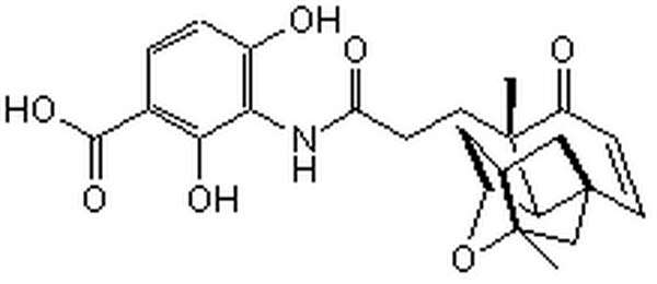 | Overview | A cell-permeable Streptomyces-derived antibiotic that exhibits broad-spectrum Gram-positive antibacterial activity by selectively targeting the elongation condensing enzyme FabF (IC50 = 48 and 160 nM against S. aureus and E. coli FabF, respectively), but not the initiation condensing enzyme FabH (IC50 = 67 µM), involved in type II fatty acid synthesis (FASII). Binding studies indicate that acyl-FabF intermediate complex formation induces a FabF conformation change that is necessary for Platensimycin interaction. Platensimycin effectively kills numerous Staphylococcus aureus, Enterococcus faecium, and Streptococcus pneumoniae strains, including the ones that are resistant to methicillin and vancomycin (Cat. No. 627850). Platensimycin does not exhibit antifungal activity towards Candida albicans (no effect at 64 µg/ml) or toxicity toward mammalian HeLa culture (no effect at 1000 µg/ml) and is efficacious in treating S. aureus infection in mice in vivo (~105-fold bacteria titre reduction via a 24 h i.v. at 150 µg h-1). Although Platensimycin is ineffective toward wild-type E. coli due to the presence of functional multidrug efflux pump (no effect at 64 µg/ml), Platensimycin does inhibit the growth of efflux-negative E. coli strains. Platensimycin has been shown to potently and selectively inhibit hepatocyte FAS and fatty acid oxidation (FAO), without affecting sterol synthesis. Platensimycin is also known as Fatty Acid Synthase Inhibitor III. |