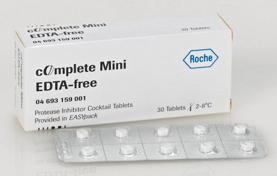 cOmplete™, Mini, EDTA-free Protease Inhibitor Cocktail, Tablets provided in EASYpacks