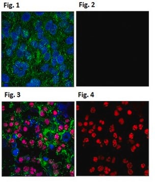 Western Blot Analysis: 0.05-1 μg/mL of a representative lot of the non-conjugated form of this antibody (Cat. # 05-636) detected phosphorylated histone H2A.X (Ser139) in acid extracted histone lysates from Jurkat cells treated with 0.5 μM staurosporine (Catalog # 19-123).