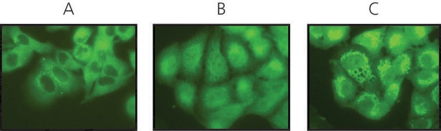 indirect immunofluorescence: 1:50-1:100 using A549 human lung carcinoma cells fixed with paraformaldehyde/triton