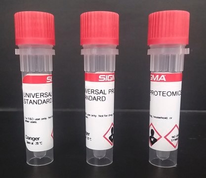 The Universal Proteomics Standard (UPS) Set is intended to standardize and/or evaluate mass spectrometric (e.g., LC-MS/MS, MALDI-TOF-MS, etc.) and electrophoretic analysis conditions prior to the analysis of complex protein samples. Potential uses include: