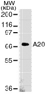More>> Anti-A20 mouse monoclonal antibody, clone 59A426, recognizes ~70 kDa A20 protein in Daudi cells. It is validated for use in immunoblotting and immunoprecipitation. Less<<Recommended Products